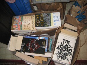 See these bags of books? These are my lucky finds from last year’s public library sale. Quick aside: Awesome event! Twice a year, the friends of the public library organize a HUGE used book sale (500,000 items for sale, or so they say). Everything is $5 or less (paperbacks typically $1 or $2), and all proceeds benefit the public libraries.