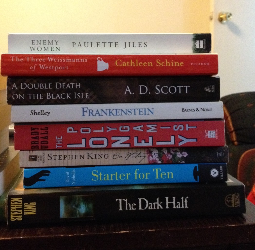 You made out like a bandit at the book sale. My favorite book amongst your piles? The Eyes of the Dragon. I always recommend that to people who say they don’t read Stephen King because he’s a horror writer. Also, it’s a book that begs to be read aloud.