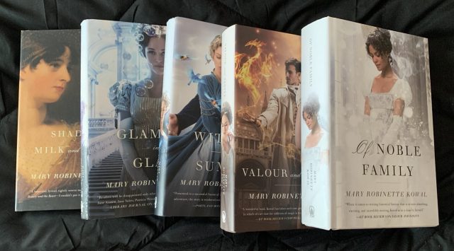 I gave in to temptation and ordered a complete set of five signed hardcovers from Mary Robinette Kowal! I already own paperbacks of the series (The Glamourist Histories — so good!), but when I saw a post from the author mentioning that a limited number of the hardcovers were available, I couldn’t resist.