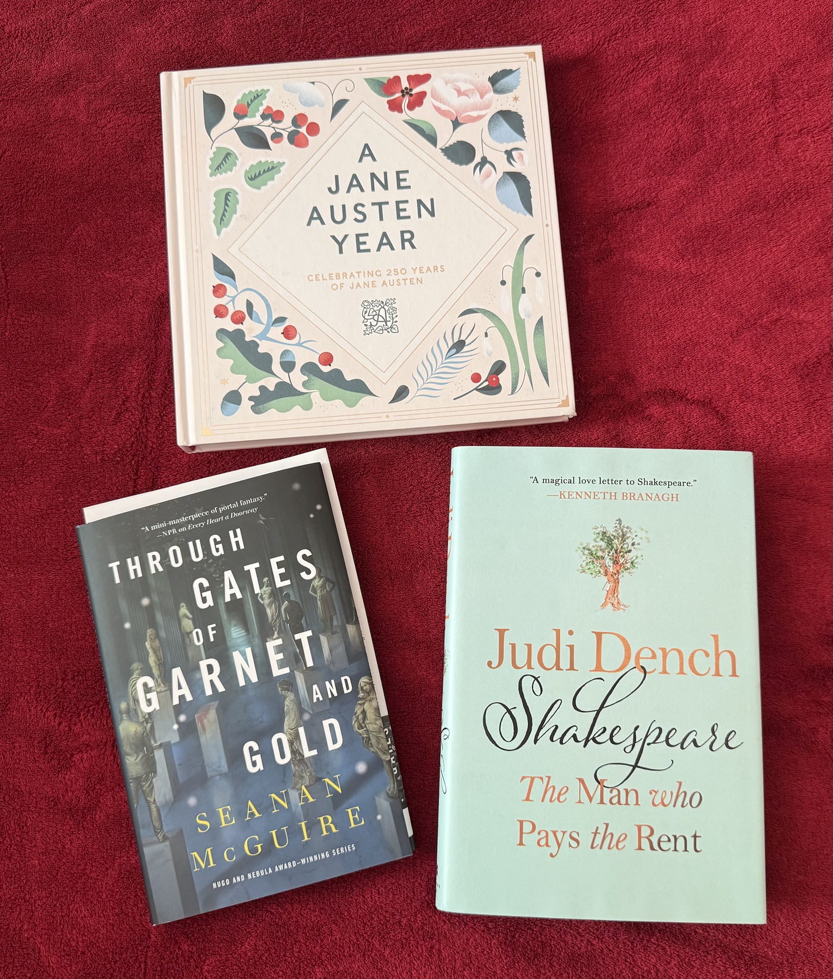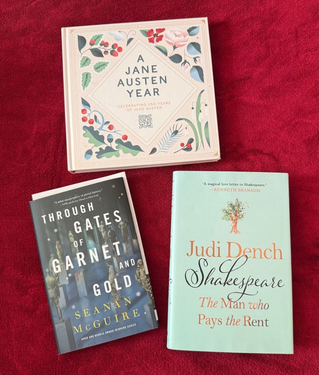I treated myself to copies of an Austen-related book and the Judi Dench book that’s my current audio listen, and received an early copy of the new Wayward Children book from the publisher.