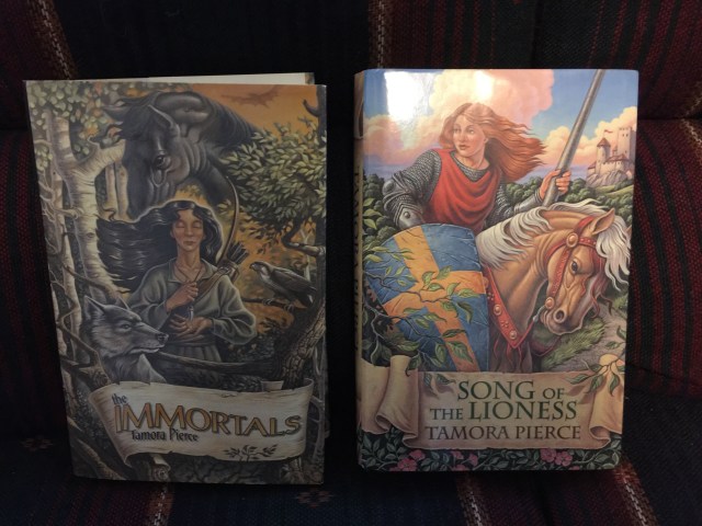 I treated myself to a couple of hardcover all-in-one editions of Tamora Pierce quartets: